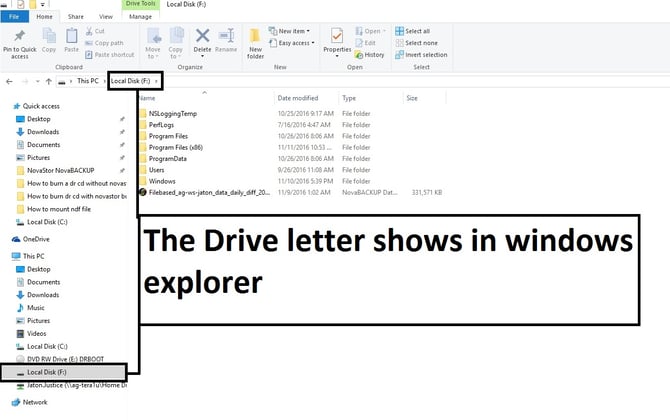 If the mount was successful then you can now see the drive in windows explorer, like as seen in the below example (or otherwise check in the Windows Disk Management app (using the "diskmgmt.msc" command) to check to see what drives are mounted (as possibly it wasn't given a drive letter that is visible in that case):