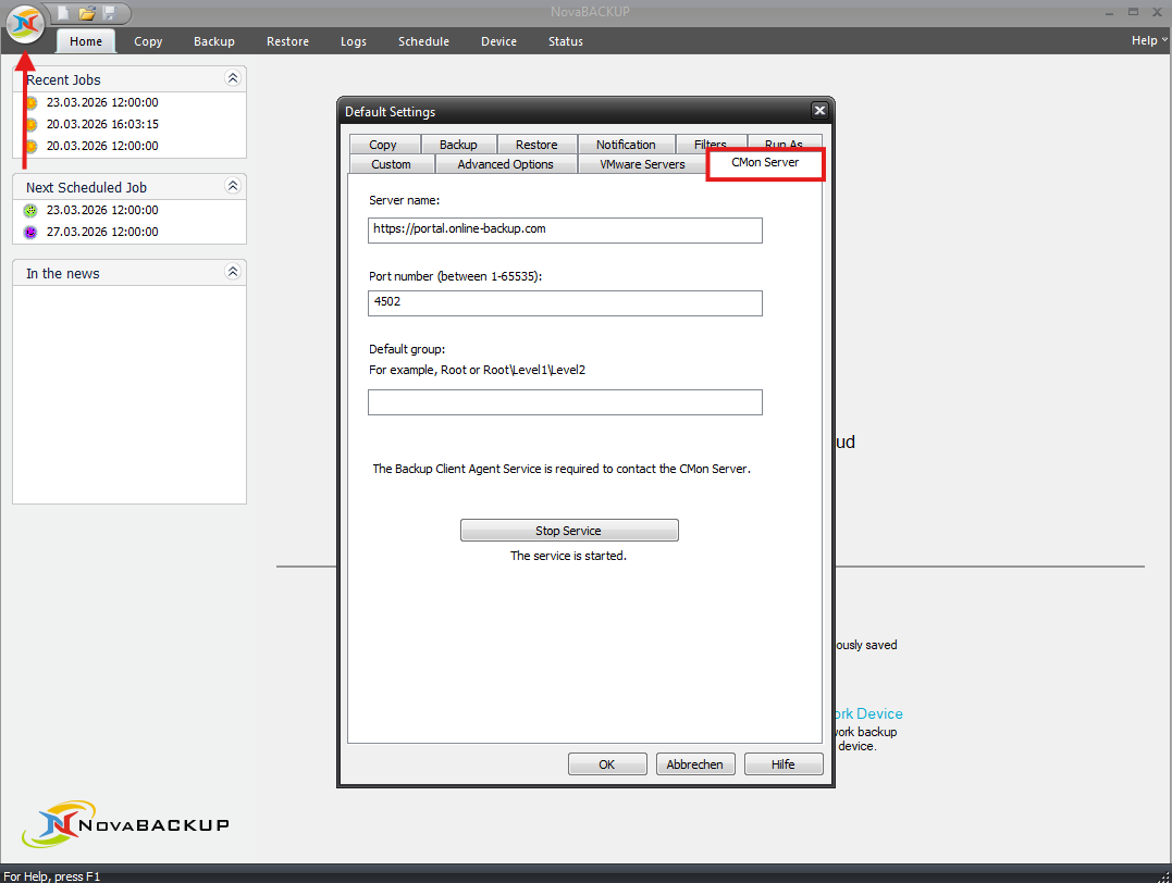 - Open NovaBACKUP on the target machine.